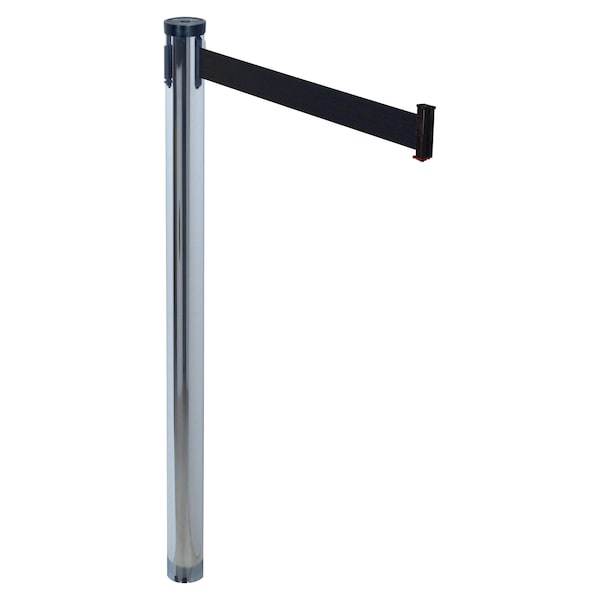 Sleek, polished chrome posts with adjustable, nylon web tape provide stylish, portable traffic guides. Ideal for users needing frequent adjustment of post locations indoors and outdoors. They are suitable for heavy-duty use. Tape extends from post head up to 10' and retracts slowly and safely as needed. Each Adjusta-tape post can receive tape from up to three other posts. Heavy-duty shell is mirror-polished. Weighted, polished chrome base (TCO11501) stays in place and is sold separately.