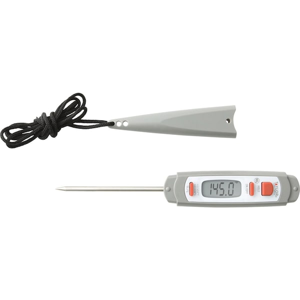 Keep an eye on temperature with the Anti-Microbial Instant Read Digital Thermometer. With a pan-style LCD readout, the thermometer has a temperature range from -40deg F-450deg F or -40deg C-230deg C. The waterproof thermometer has an on/off switch and hold button. The NSF-listed thermometer comes with an anti-microbial pocket sleeve, a lanyard and an installed LR44 battery.