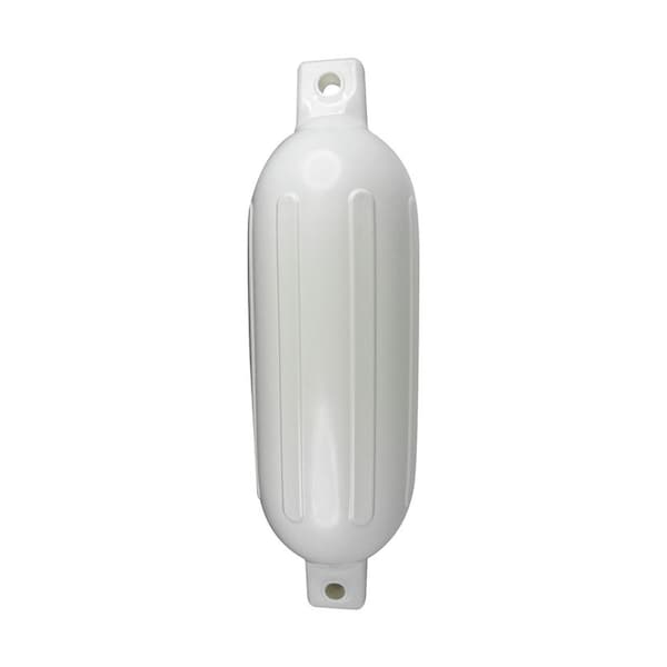A cushioning device used on the side of a boat or dock to absorb impact or friction. Attached to cleat on boat or dock. Roto-molded fenders are manufactured from marine grade vinyl for superior strength, cushioning, even wall thickness and a high gloss finish. Recessed valve to prevent valve lug from pulling away from fender. Valve plug housing molded into fender.