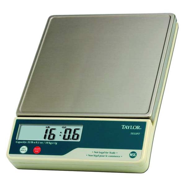 Bench Scale, Scale Application Food Prep, Packaging, Scale Type Platform Bench, Scale Display LCD, Weighing Surface Depth 7 1/8 in, Weighing Surface Width 7 1/8 in, Weight Capacity 22 lb, Weighing Units kg, g, lb, oz, Scale Graduations 0.1 oz, Overall Width 8 1/2 in, Overall Depth 12 1/4 in, Overall Height 2 3/4 in, Accuracy 1 Percent, Weighing Surface Height 7 1/8 in, Basic Power Source Battery/Electric, Bench Scale Type General Purpose, Display Type LCD