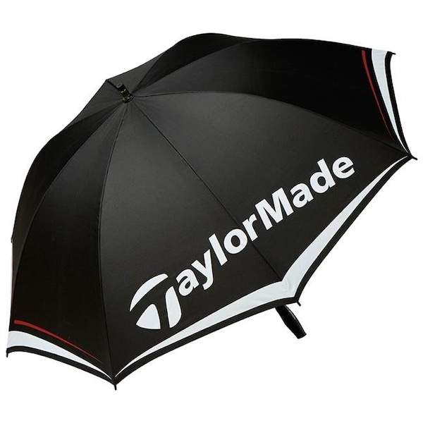 Single canopy manual open umbrella. Ergonomic sport-grip rubber-coated handle. Features clean and bold TaylorMade branding.