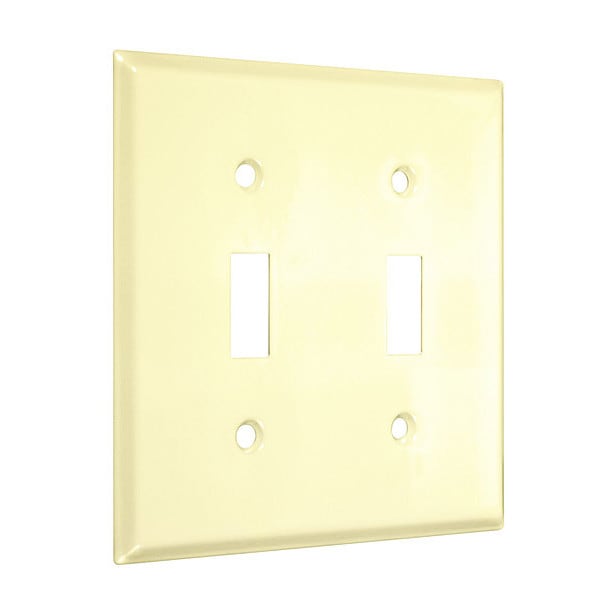 2-Toggle Standard Wall Plates, Number of Gangs: 2 Metal, Smooth Finish, Ivory