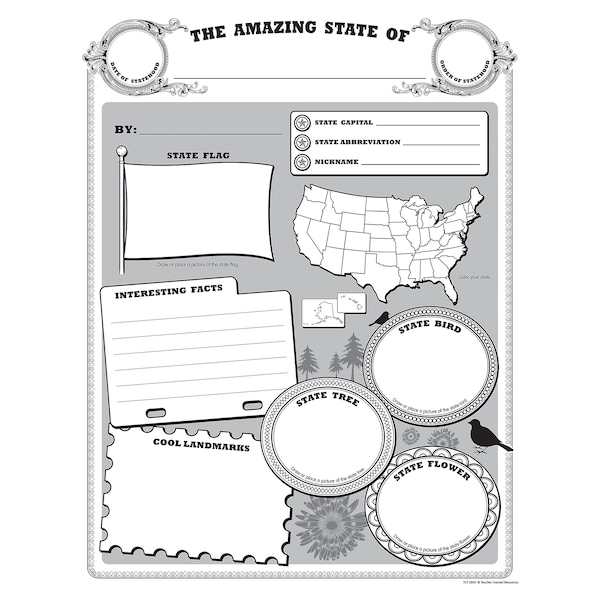 Here's a fun way for students to do a state report and display what they have learned for the whole class to see. Once they research specific information about their state like the capital, the date of statehood, landmarks, and other interesting facts they fill out their own poster to show what they've learned. The large 17" x 22" sheets provide plenty of space for words and pictures. Each pack includes 32 sheets.