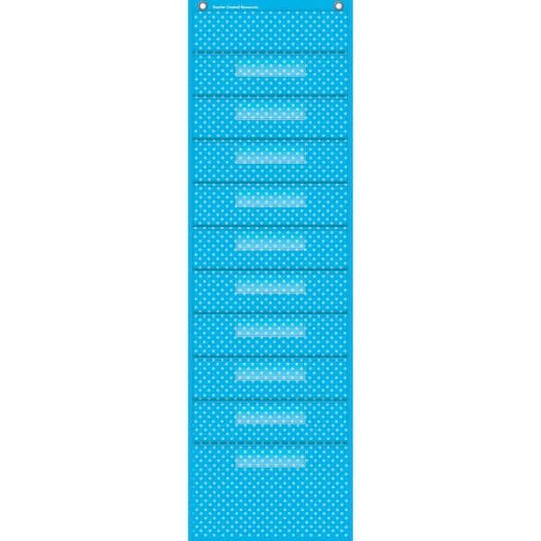 Aqua Polka Dots 10 Pocket File Storage Pocket Chart, 14in. x 46.5in.