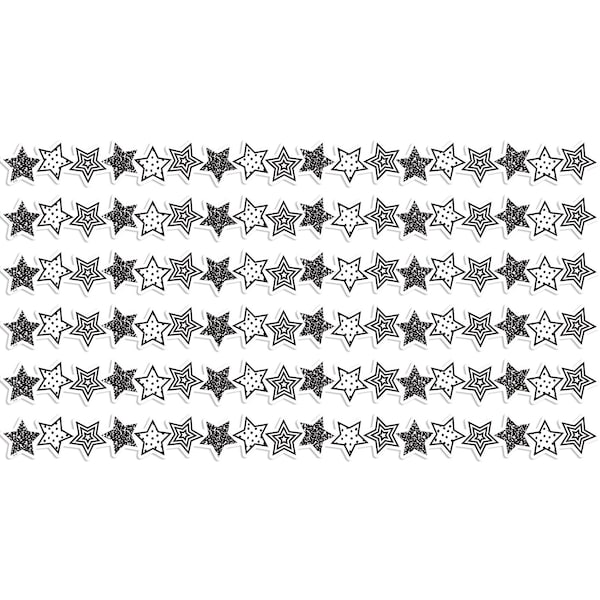Black and White Stars Die-Cut Border Trim, 35 Feet Per Pack, 6PK