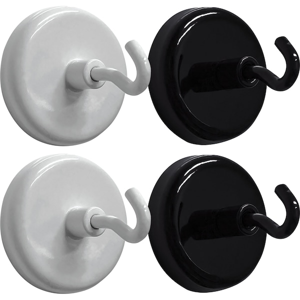 Black & White Magnetic Hooks, 4-Piece Set, 4PK