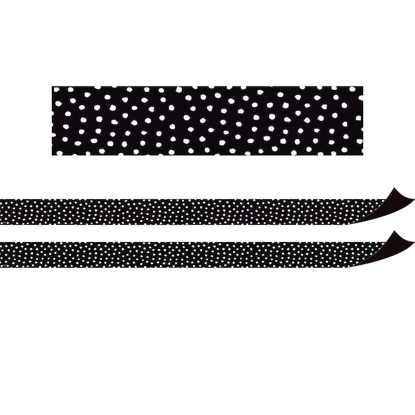 Black with White Painted Dots Magnetic Border, 24 Feet Per Pack, 2PK