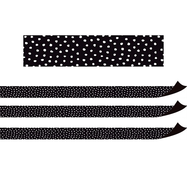 Black with White Painted Dots Magnetic Border, 24 Feet Per Pack, 3PK