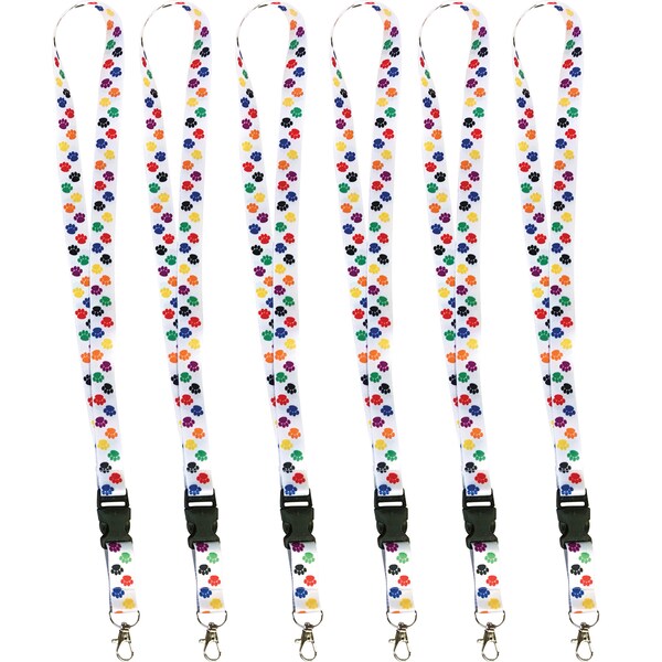 Keep your ID handy with these stylish and durable lanyards. These lanyards feature a strong plastic clip for easy removal as well as a metal ring and metal swivel clasp to securely hold your keys, ID badge, or anything you want to have close by. The soft fabric is comfortable to wear and comes in a variety of fun styles. Measures 21-3/4" long x 3/4" wide. Pack of 6 lanyards.