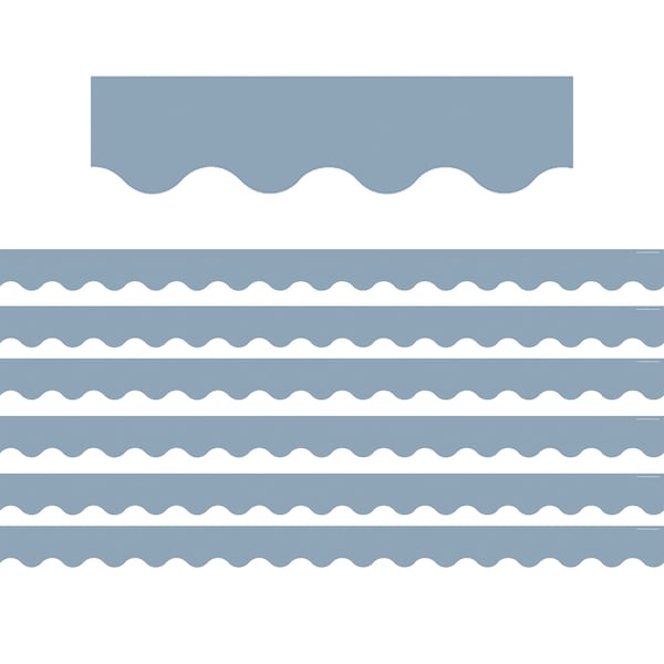 Use this cottage blue scalloped border trim to liven up your classroom! Create fresh looks for bulletin boards, windows, walls, and class projects. Mix and match with coordinating products stickers, notepads, awards, etc. for a classroom theme. Each pack has 12 pieces 3'' x 35'' for a total length of 35 feet of trim! Sold as 6 packs for a total of 72 pieces 210 feet.
