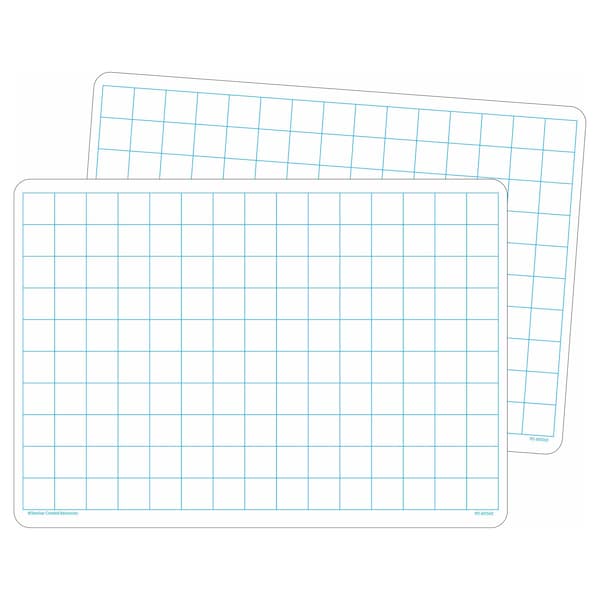 This double-sided dry erase board has a write-on/wipe off surface. One side is a grid—perfect for practicing graphing and data collection, the other side is blank. The grid squares are 1 centimeter each. Each sturdy board measures 9" x 12". Includes 10 boards.