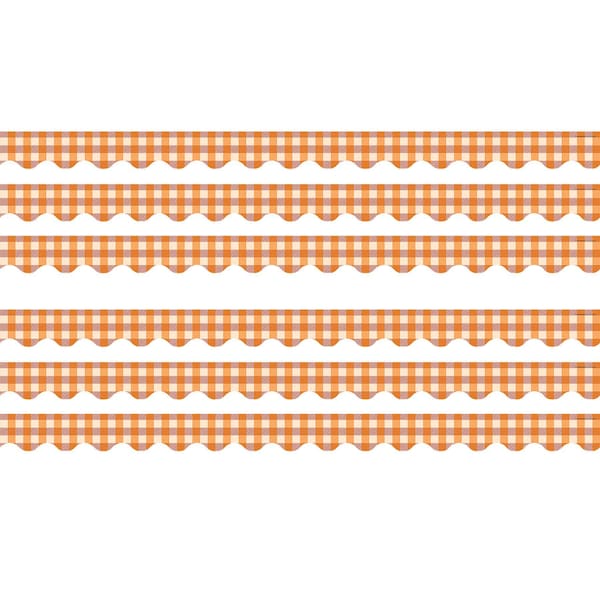 - Orange Gingham Scalloped border trim to liven up your classroom