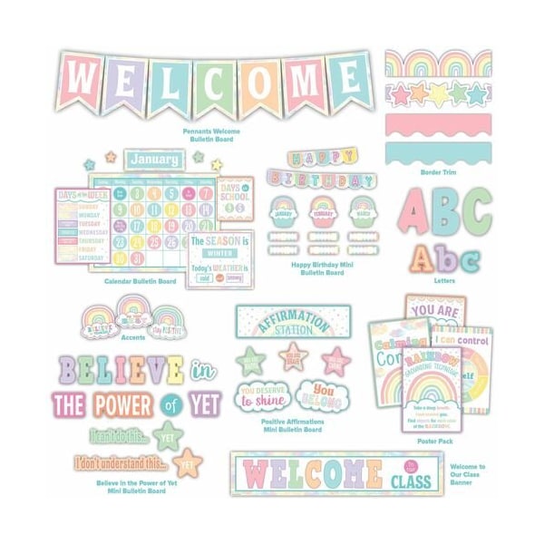 Teacher Created Resources Classroom Decor Set,Bulletins/Posters/Letters,Pastel Pop,MI SET,BB,PASTEL POP THEME