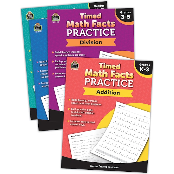 Build fluency, increase speed, and track progress with this series. These books will help students gain fluency, flexibility, confidence, and speed in solving math problems, and each unique page offers another opportunity to practice and improve. Tracking sheets makes monitoring progress easy, and an easy-to-check answer keys are included for every practice page. Each set includes 4 books: Timed Math Facts Practice: Addition, Timed Math Facts Practice: Subtraction, Timed Math Facts Practice: Multiplication, and Timed Math Facts Practice: Division. Each book includes 64 pages.