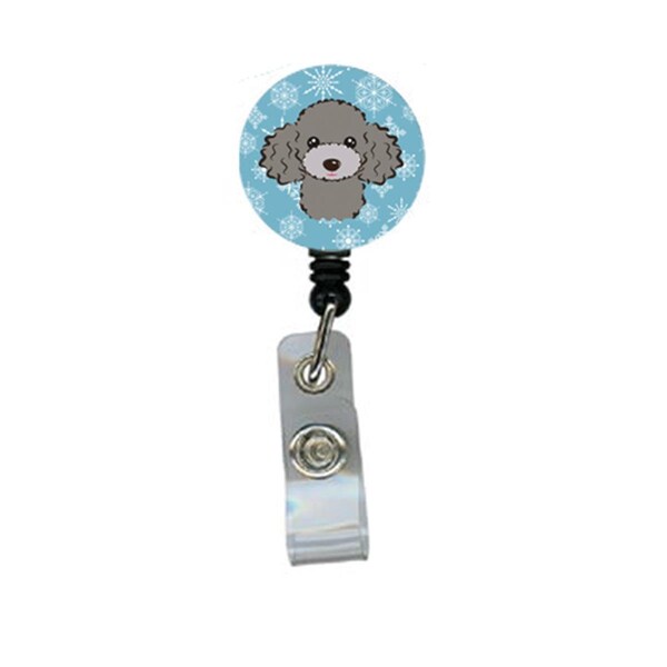 Snowflake Silver Gray Poodle Retractable Badge Reel