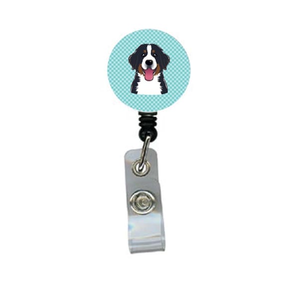 Checkerboard Blue Bernese Mountain Dog Retractable Badge Reel