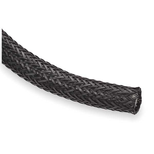 Braided Cable Sleeve, 2 in Inside Dia., 2-1/2 in Max Bundle Dia., 5 ft, Nylon, Black