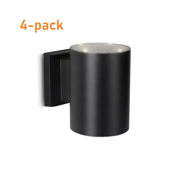 Outdoor Solar Wall Light Cylinder Aluminum Metal Black Sconce , 4PK