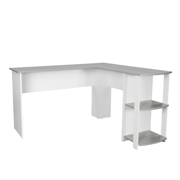 Modern L-Shaped Desk with Side Shelves, Grey