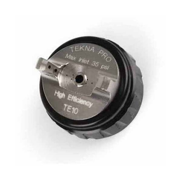 The TE10 high efficiency air cap is ideal for basecoats, low solids and clearcoats. 12-13in spray pattern; 7.5-11.0 CFM at 20-35 psi inlet