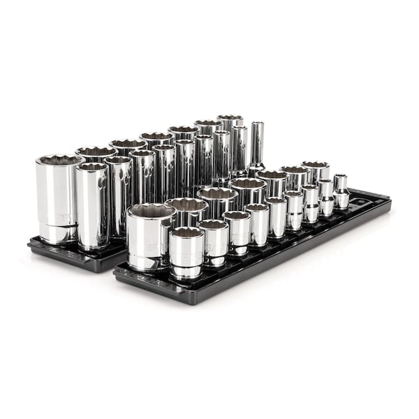 1/2 Inch Drive 12-Point Socket Set with Rails and Trays, 32-Piece 3/8 - 1-5/16 in.