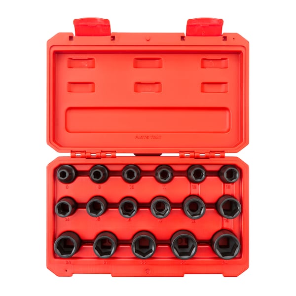1/2 Inch Drive 6-Point Impact Socket Set, 17-Piece (8-24 mm)