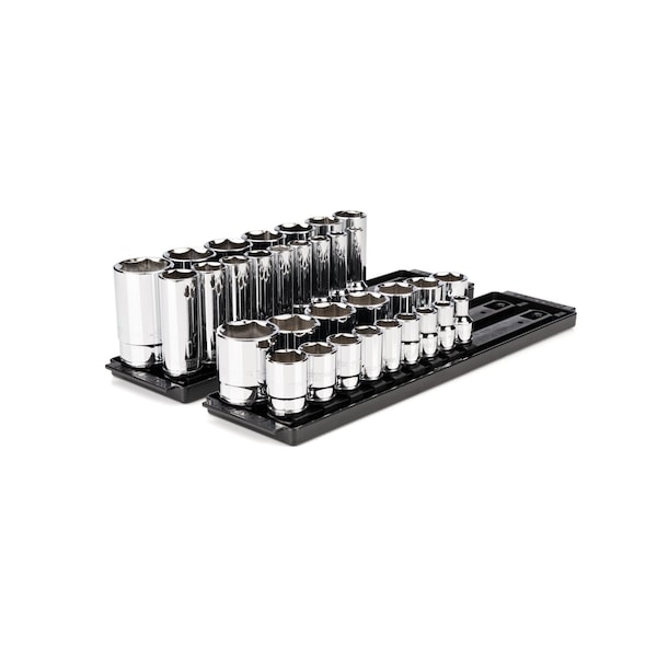 1/2 Inch Drive 6-Point Socket Set with Rails and Trays, 32-Piece 3/8 - 1-5/16 in.