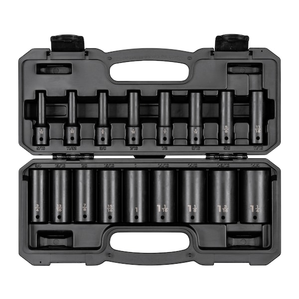 1/2 Inch Drive Deep 12-Point Impact Socket Set, 17-Piece (5/16 - 1-1/4 in.)