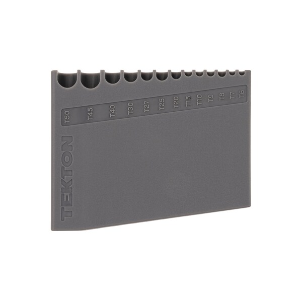 The TEKTON 13-tool L-key holder is a low profile organization solution for your L-keys that provides easy access to each tool without having to move others out of the way. Holder slots are uniquely shaped to guide the head of each L-key into alignment with the others. Molded size markings under each slot help you quickly identify L-key sizes.
