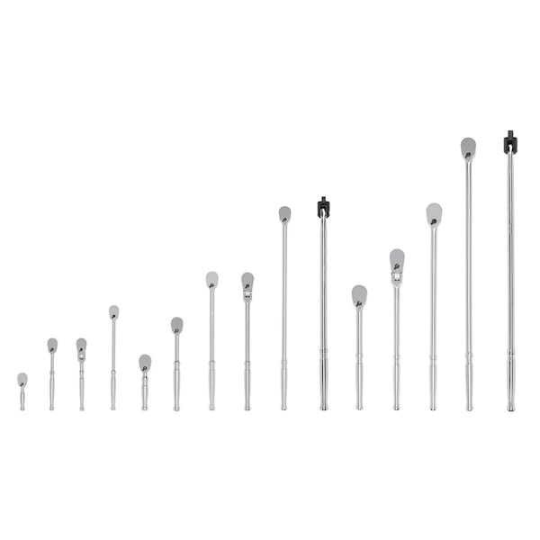 1/4, 3/8, 1/2 Inch Drive Ratchet and Breaker Bar Set (15-Piece)