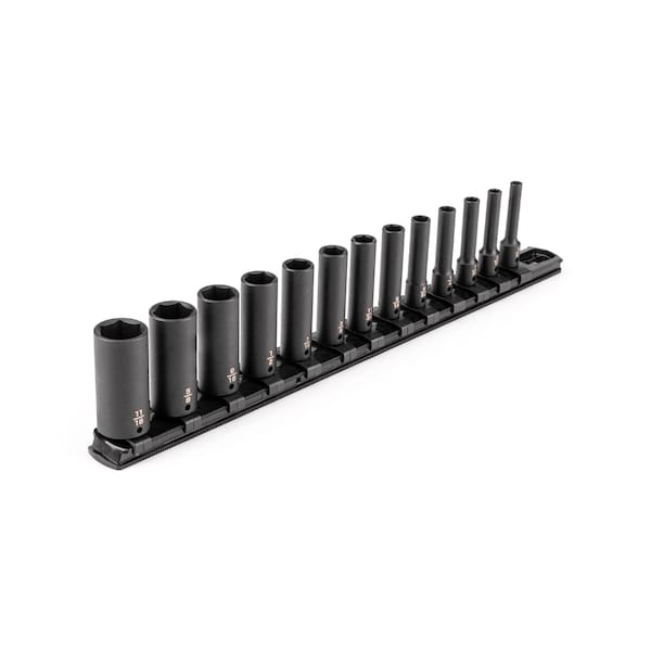1/4'' Drive Deep 6-Point Impact Socket Set with Rail, 13-Piece, 5/32-11/16''