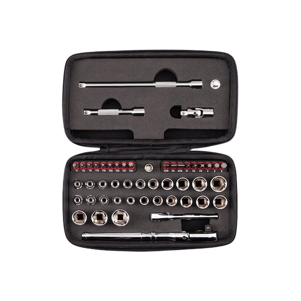1/4 Inch Drive Small Engine Repair Kit with Flex Head Quick-Release Ratchet and Case (50-Piece)