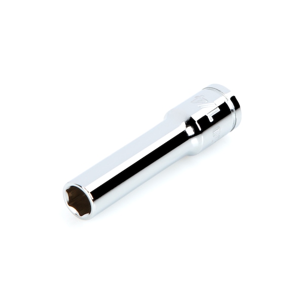 TEKTON 6-point sockets are ideal for working with hex-shaped fasteners. They're designed to grip the sides and not the corners of the fastener heads, which prevents round-off. Their extended length allows the deep socket to fit over long fasteners and reach into recessed areas. The large, die-stamped markings are permanently impressed into the material and optimized for readability.