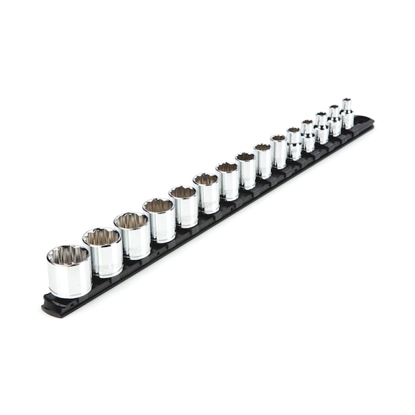 3/8 Inch Drive 12-Point Socket Set with Rail, 15-Piece (1/4-1 in.)