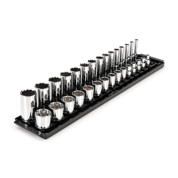 3/8 Inch Drive 12-Point Socket Set with Rails and Tray, 30-Piece 1/4-1 in.