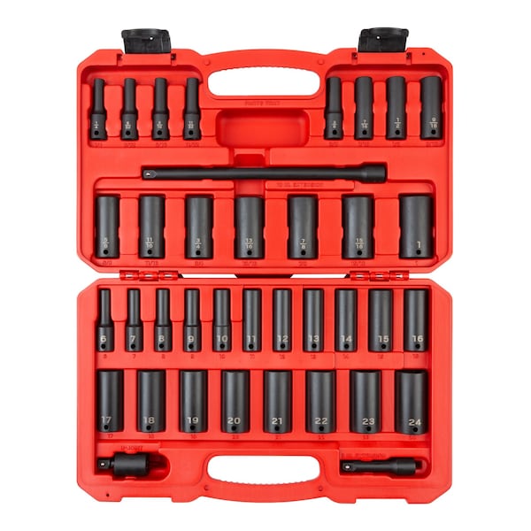 3/8 Inch Drive Deep 6-Point Impact Socket Set, 37-Piece (1/4-1 in., 6-24 mm)