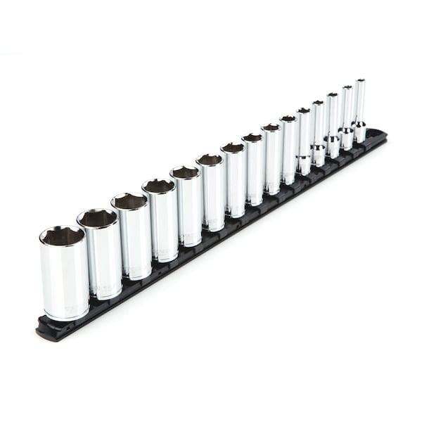 3/8 Inch Drive Deep 6-Point Socket Set with Rail, 15-Piece (1/4-1 in.)