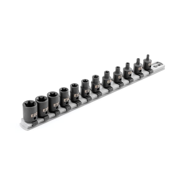3/8 Inch Drive External Star Impact Socket Set with Rail, 12-Piece (E4 - E20)