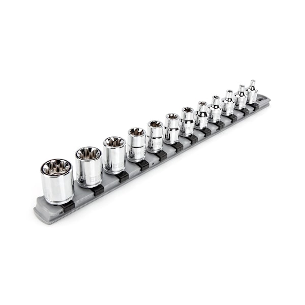 3/8 Inch Drive External Star Socket Set with Rail, 12-Piece E4-E20