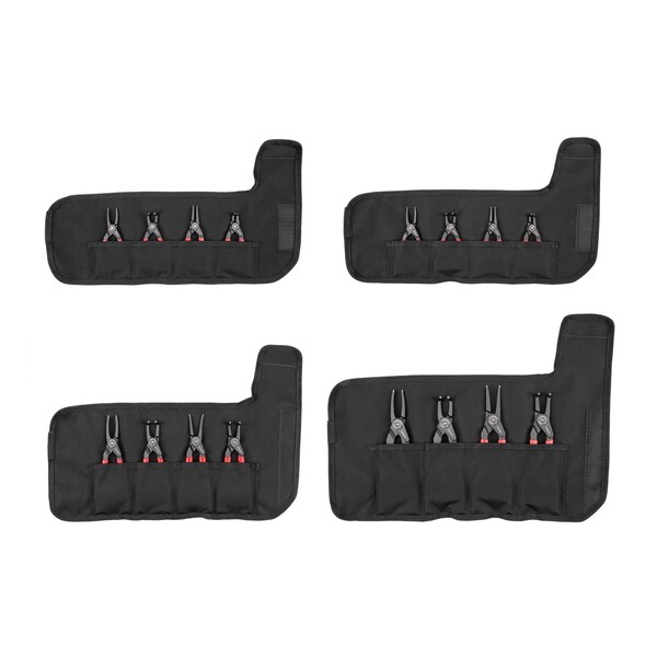- 4-pc. 5 inch retaining ring pliers (0.037 in. tips): Internal straight, external straight, internal 90-degree, external 90-degree