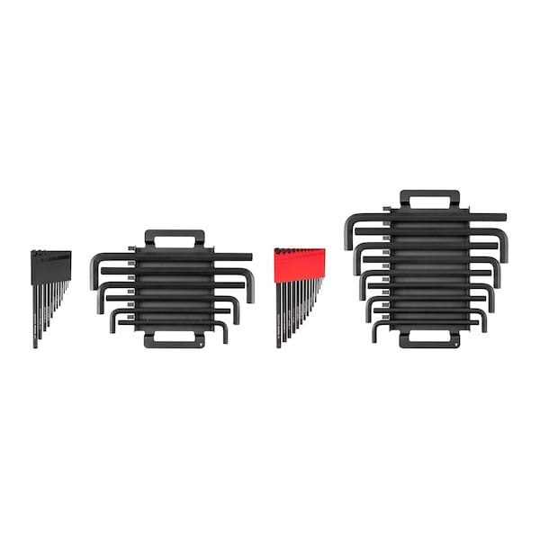 - 24-pc. flat end hex L-keys: 1.3, 1.5, 2, 2.5, 3, 3.5, 4, 4.5, 5, 5.5, 6, 7, 8, 9, 10, 11, 12, 13, 14, 15, 16, 17, 18, 19 mm