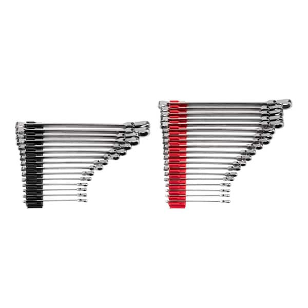 Long Fixed/Flex Hd 12-Pnt Ratcheting Box End Wrench Set W/Modular Organizers, 34-Pcs, 1/4-1'', 6-24mm