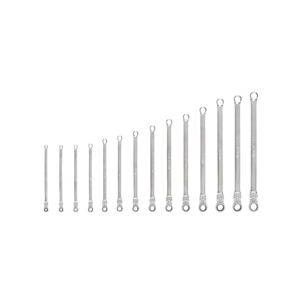 Long Fixed/Flex Head 12-Point Ratcheting Box End Wrench Set, 14-Piece, 6-19 mm