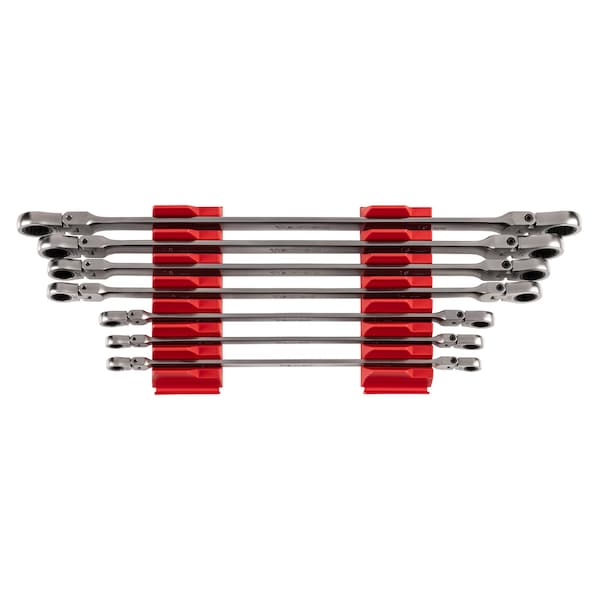 Long Flex Head 12-Point Ratcheting Box End Wrench Set w/ Modular Wrench Organizer, 7-Piece (6-19 mm)