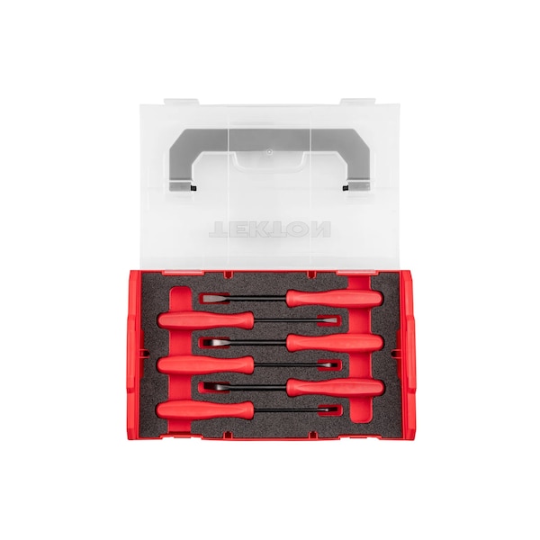 This Tekton tool set is part of the L-BOXX Stacking Organization System and easily integrates with all other components in the L-BOXX family of products, providing virtually infinite options for configuring your own custom organization system. The set includes mini pry bars in a Mini Stacking Tool Box. The handle on the top of the stacking tool box allows multiple boxes latched together to be carried. Press both side latches in and lift up to remove the box from a stack. The laser-marked foam layouts are designed and cut in our Grand Rapids, Michigan manufacturing facility to optimize for high density, easy access, and secure fit. The foam is made of two color-contrasting layers that are permanently bonded together with a heat lamination process, making any missing tools immediately visible.
