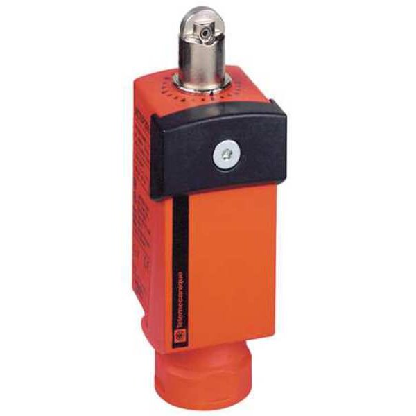 Safety Interlock Switch, Steel Roller Plunger, Contact Form 1NO/1NC, Actuator Length 0.8 in, Connection Type 1/2 in NPT Conduit, AC Contact Rating 5A @ 240V, Series XCSP, DC Contact Rating 1.5A @ 300V, Height 3.92 in, Width 1.18 in, Depth 1.36 in, NEMA Rating 12, 4X, IP Rating 66, 67, Operating Temp. Range -13 Degrees to 158 Degrees F, Conduit Size 1/2 in NPT, Body Material Plastic
