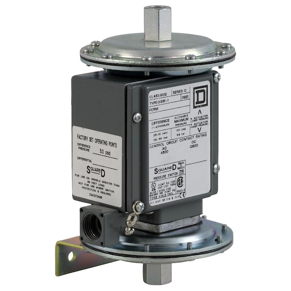 Pressure Switch 480Vac 10Amp G +Options, Series 9012G, AC Contact Rating 3 A @ 240 V, 6 A @ 120 V