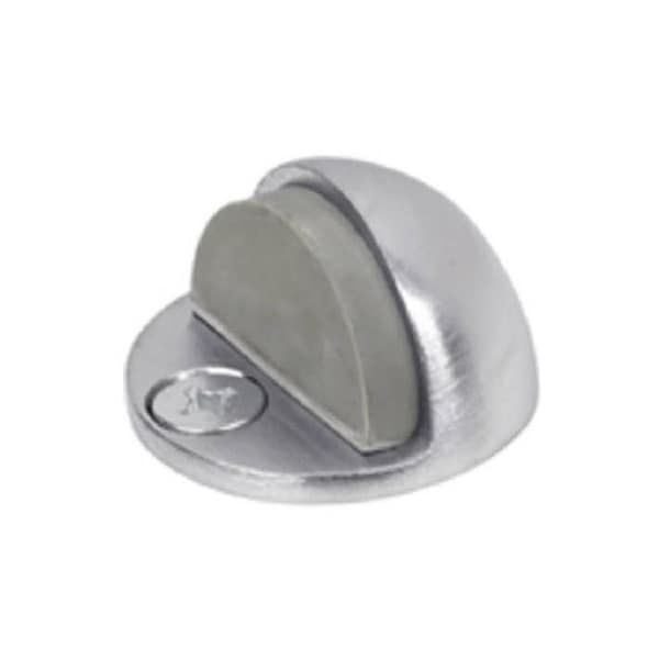 Small, Brushed Chrome Finish, 26D Die Cast Brass Door Stop, Dome Type, Floor Mounted, 118 Overall Height, 18 Thick Base, Mounting Screws Shield
