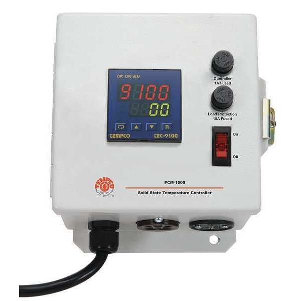 Temperature Controller, Digital, K Sensor Type, DIN Size Not Applicable, Input Voltage 240V AC, Output 16 A Relay, Temp. Range 0 Degrees to 2400 Degrees F, Control Mode PID, 16 Amps, Length 9 in, Width 9 in, Depth 9 in, 6-ft Cord, NEMA 12 Enclosure, Alarms No Alarm, Power Consumption 10 VA, Standards CE, CSA, UL