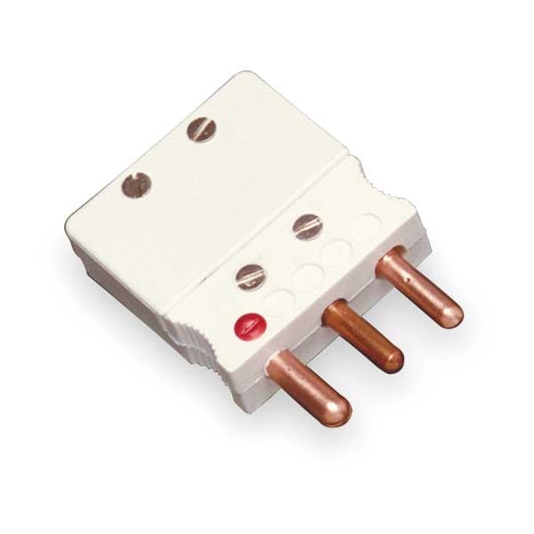 Thermocouple Plug, Body Material Nylon-Filled Thermoplastic, Characteristics 3-Pin, Hollow-Pin, Quick-Disconnect, Color White, Component Construction Nylon-Filled Thermoplastic Housing/Copper Contacts, Contact Material Copper, For Sensor Type 3-Wire RTD, Maximum Temperature 350 Degrees F/177 Degrees C, Maximum Temperature Degrees C 177 Degrees C, Maximum Temperature Degrees F 350 Degrees F, Pin Type (3) Flat Pins, Plug/Connector Type Standard, Product Type Mini Pin Plug and Jack